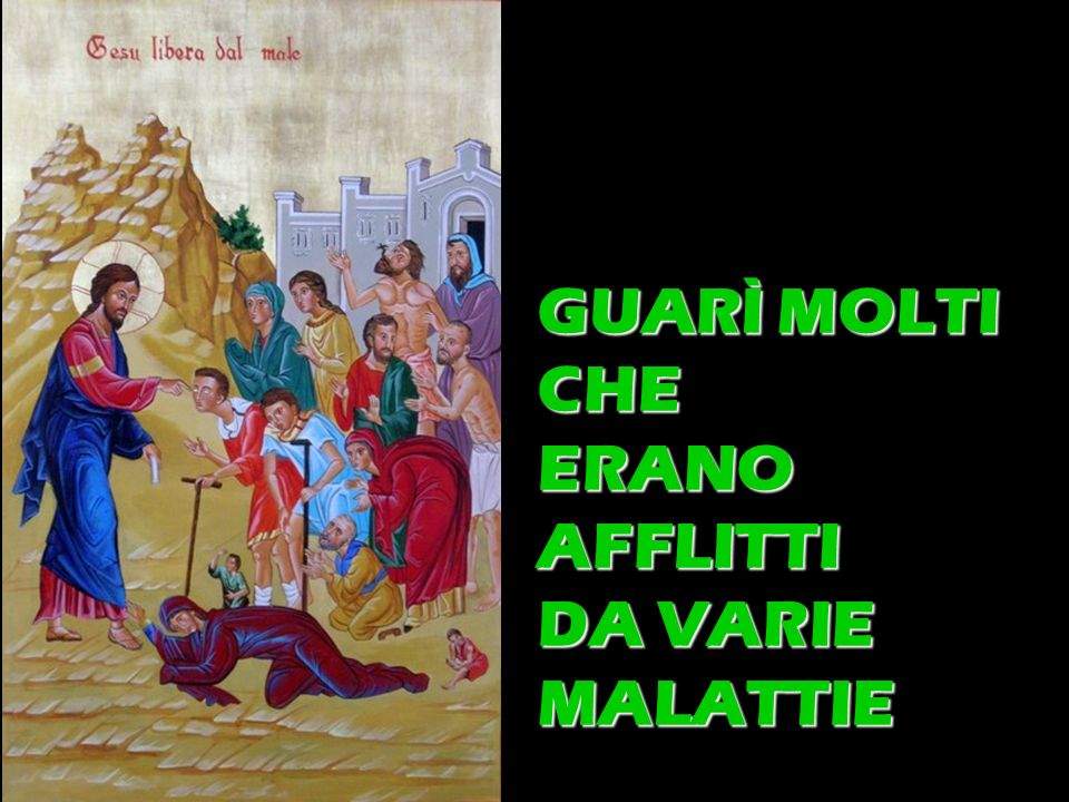 In quel tempo, Gesù uscito dalla sinagoga, si recò subito in casa di Simone e di Andrea, in compagnia di Giacomo e di Giovanni. La suocera di Simone era a letto con la febbre e subito gli parlarono di lei. Egli, accostatosi, la sollevò prendendola per mano; la febbre la lasciò ed essa si mise a servirli. Venuta la sera, dopo il tramonto del sole, gli portavano tutti i malati e gli indemoniati. Tutta la città era riunita davanti alla porta. Guarì molti che erano afflitti da varie malattie e scacciò molti demoni; ma non permetteva ai demoni di parlare, perché lo conoscevano. Al mattino si alzò quando ancora era buio e, uscito di casa, si ritirò in un luogo deserto e là pregava. Ma Simone e quelli che erano con lui si misero sulle sue tracce e, trovatolo, gli dissero: “Tutti ti cercano!”. Egli disse loro: “Andiamocene altrove per i villaggi vicini, perché io predichi anche là; per questo infatti sono venuto!”. E andò per tutta la Galilea, predicando nelle loro sinagoghe e scacciando i demoni.